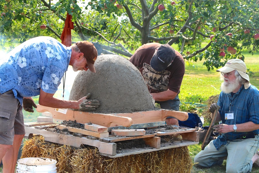 An annual event at the Grain Gathering is the building of two portable earth (mud) ovens, which are then auctioned off as a fund-raiser.
