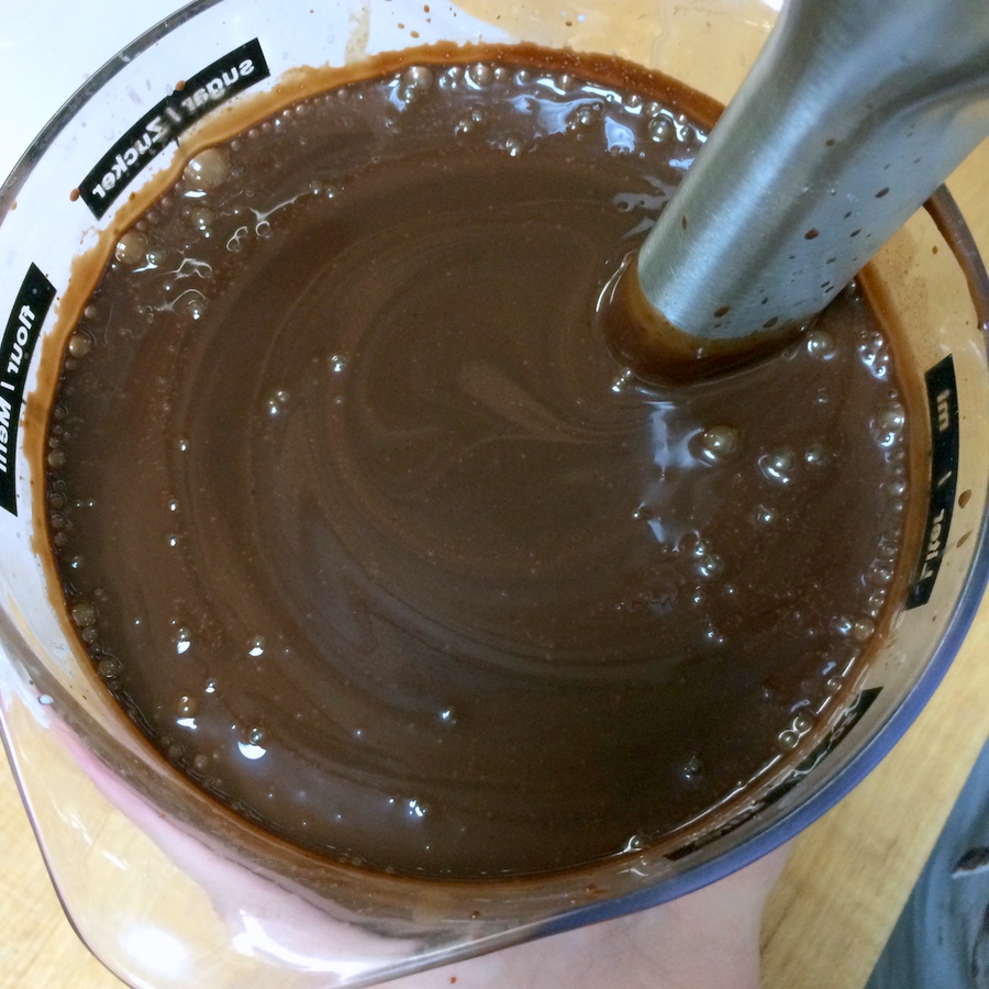 I picked up the neat trick of using an immersion blender to bring your ganache together from guest chef Jacquy Pfiffer at our Baking Education Center. Zip, zip, and it's done!