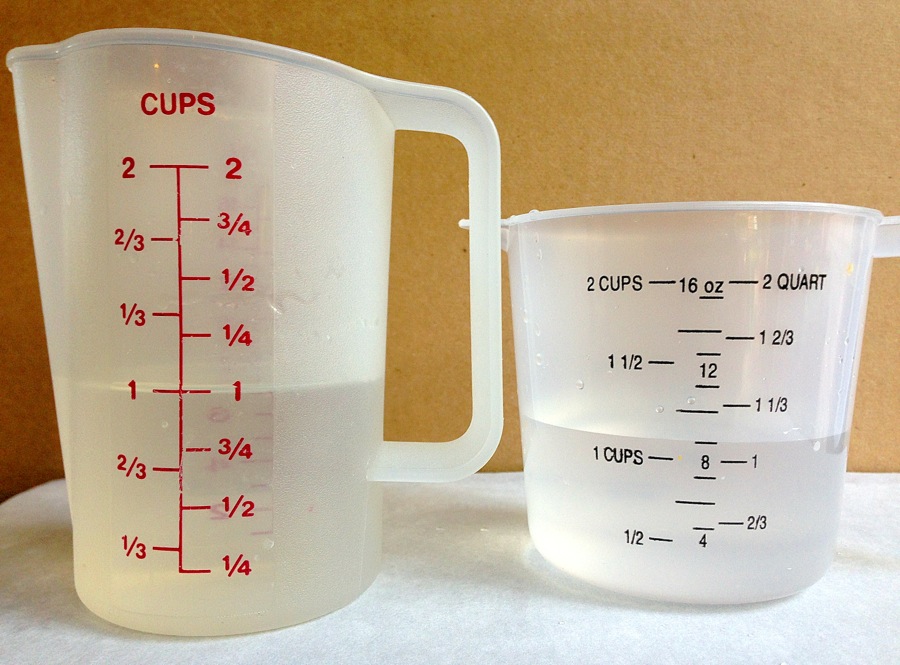 In retrospect, I should have known these new cups were crazy wrong. I mean, look at the measurements on the top – first I ever heard that 2 cups and "2 quart" are the same amount.