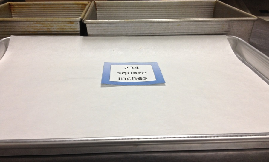 OK, we're going to talk about math today, and how to make half-sheet pan-sized (13" x 18") batches of your favorite 9" x 13" recipes.