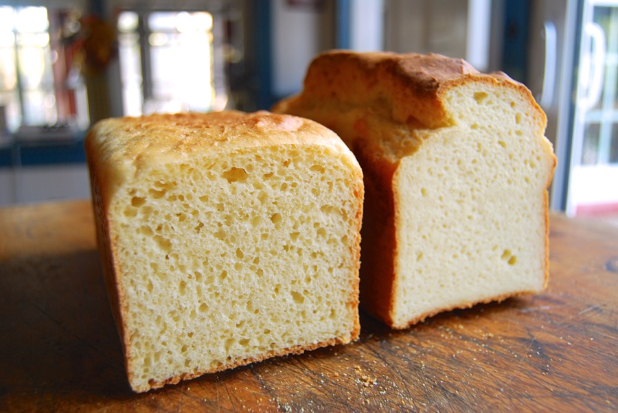 Excuse the odd crown on the gluten-free loaf – I forgot to smooth the surface thoroughly once I'd scooped the batter into the pan.