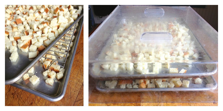 Oh, and if you're in a hurry? Simply bake the bread cubes in a preheated 350°F oven for 10 minutes. That'll "stale" them quickly.