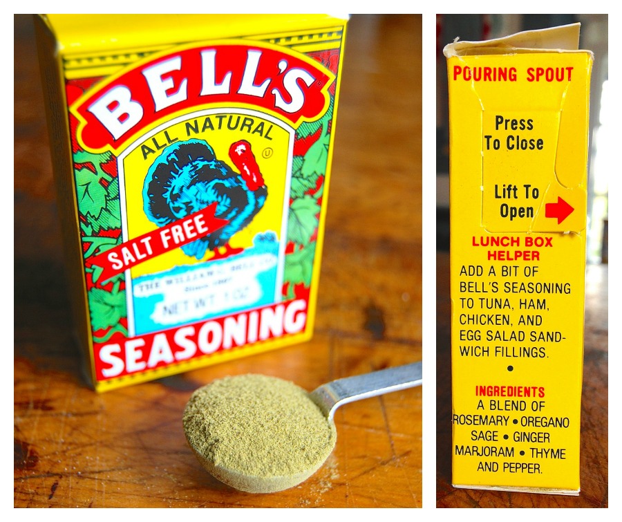 Here's where the reading labels part comes in. I like to use Bell's Seasoning in my stuffing, since it combines all those stuffing-like flavors in one handy blend.