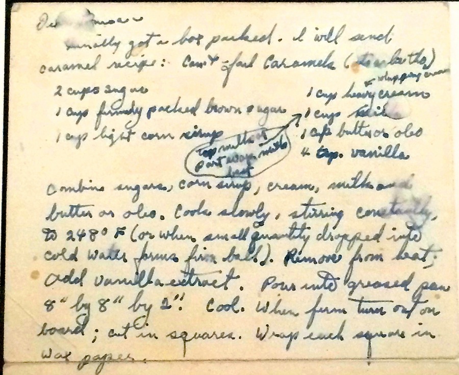 There was one recipe that my mother made each year during the holidays that was truly great.  Caramels, in the ethos of my mother’s farm upbringing, were a handmade gift, a special indulgence, and a test of culinary prowess. While her mother didn't make this particular caramel recipe, candies were made on the farm for Christmas and other special occasions. They were passed out as gifts and served at family celebrations. Back then the candy of choice was usually fondant, which didn't require expensive ingredients.