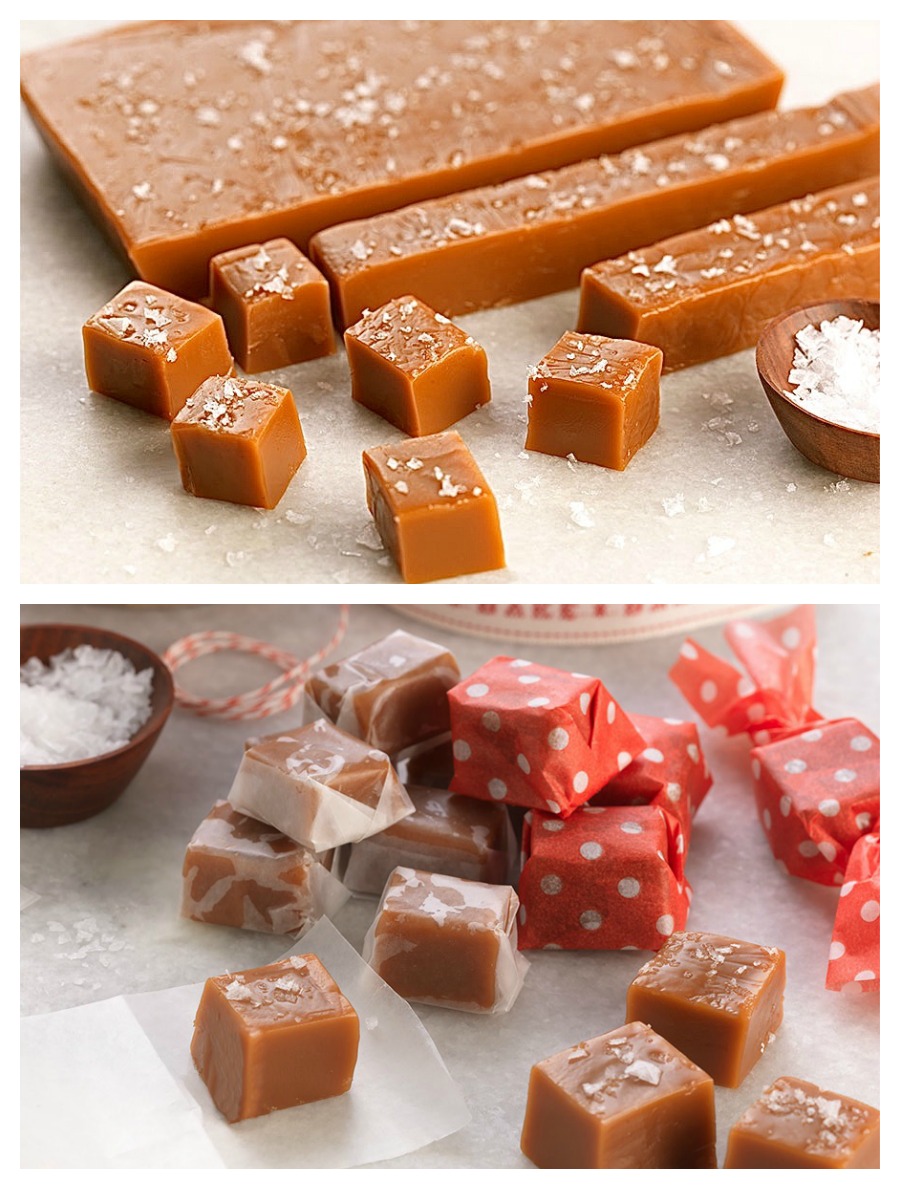 Cut in squares and wrap in waxed paper or parchment paper. Wrapped caramels can also be frozen.
