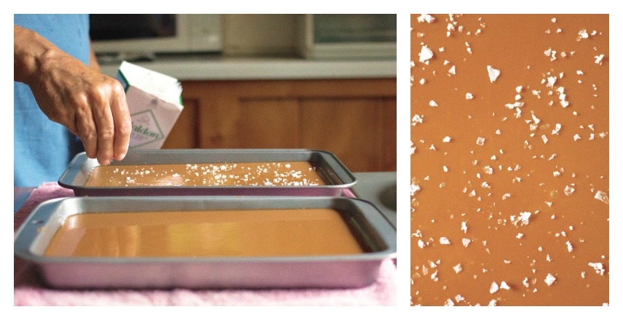 After 30 minutes, dust the candy with salt flakes, if desired. You need to wait for this step so that the salt doesn’t completely melt into the candy.