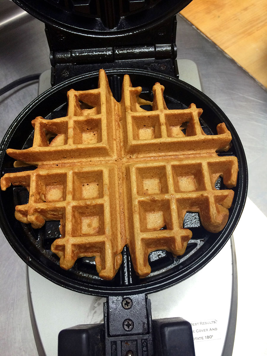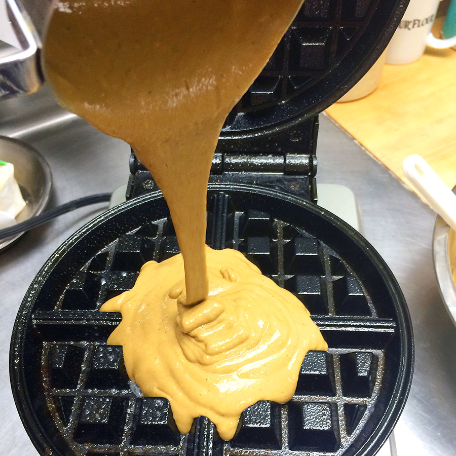In the morning, get out your waffle maker and get it preheating. I’m partial to a Belgian-style waffle maker, because it makes waffles with huge pockets for the maple syrup to pool.