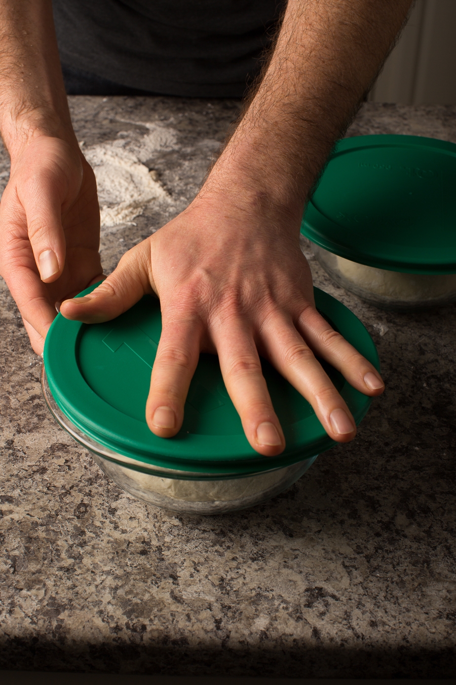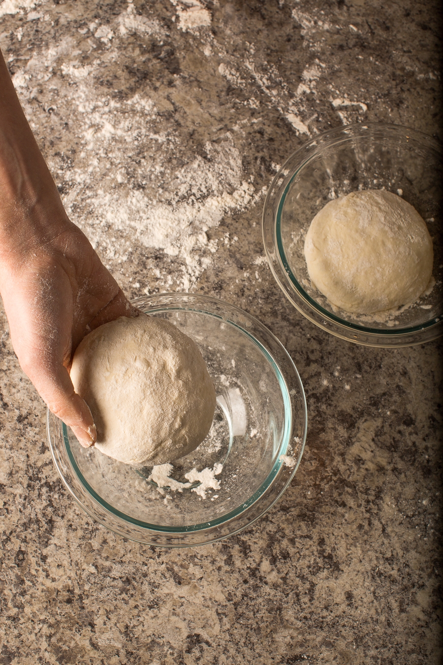 Cover the bowl and allow the dough to proof (rise) for 45 minutes to an hour, while your oven preheats. In the colder months, place the bowls on the stove top to stay warm.