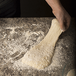 If you find your dough is difficult to stretch, set it down on a floured surface for 5 to 10 minutes to allow the gluten to relax.