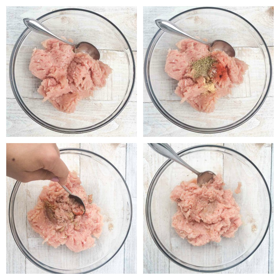 Mix together with a spoon until the spices are evenly distributed throughout the chicken. Set this mixture aside.