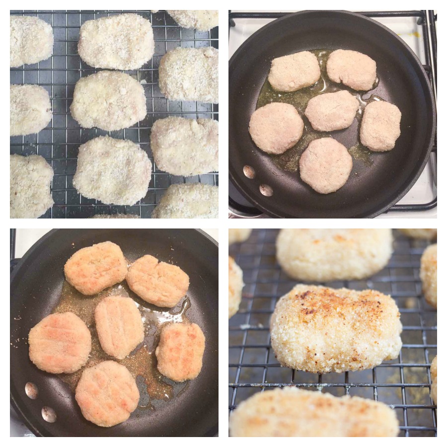 It took a few attempts, but I’m excited to share my creation with you today. I used a coating of our almond flour, dredged them in a cornstarch slurry (to act as the egg wash), pan fried them in a little olive oil, and then baked them until done. Super easy and super tasty!