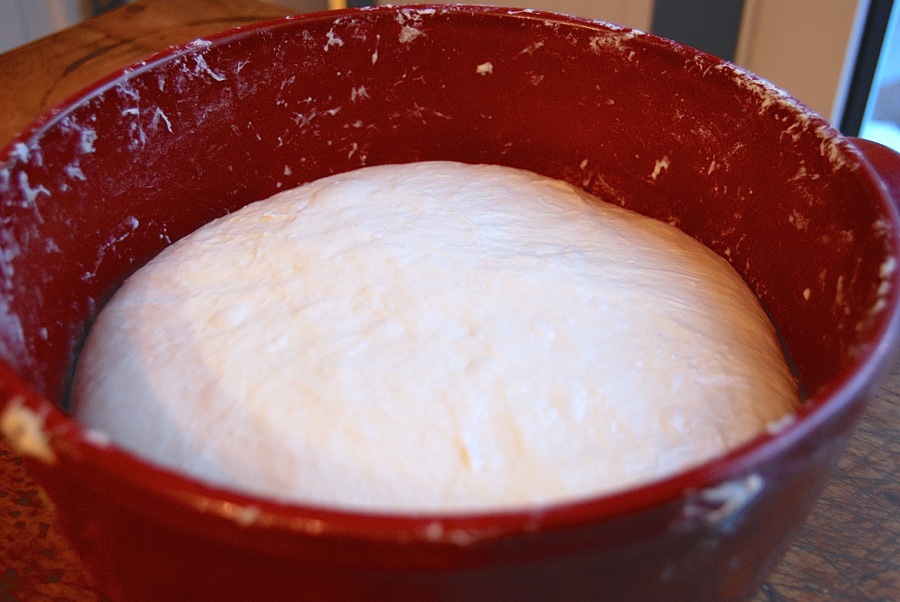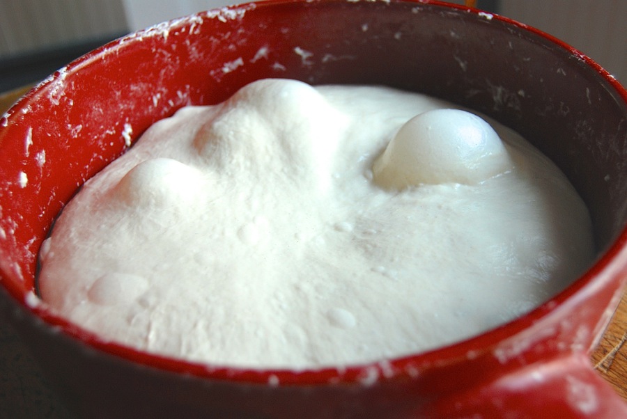 ...and let it rise for 4 hours. Then I stick it in the fridge overnight (yes, covered).
