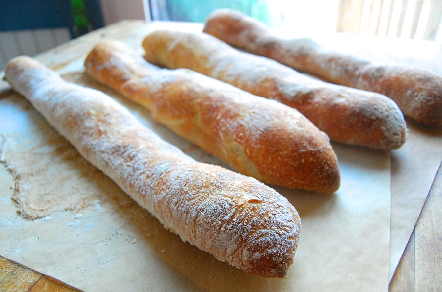 An easy-to-make baguette with a five-page recipe, that is. But if you love yeast baking as much as I do, it's like diving into a great novel; the details are there to drive the story, and this bread tells a wonderful story by the time it's done. Crunchy and chewy, with great "bite," each long, skinny loaf is filled with those large, irregular holes all of us home bread bakers strive for in our baguettes and country breads.