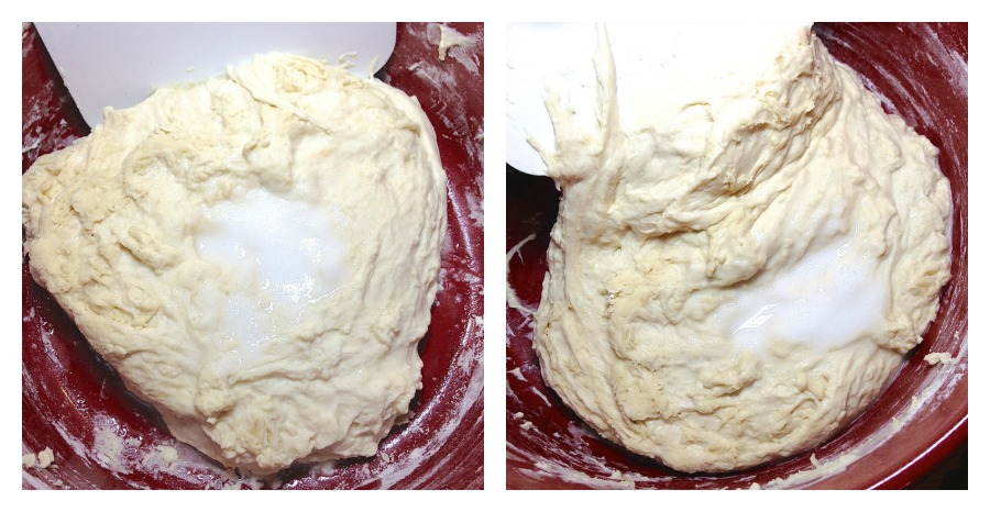 By the third or fourth time, you'll notice you can set aside the bowl scraper and actually grab the increasingly elastic dough with your fingers. It becomes subtly smoother as you go through the process.