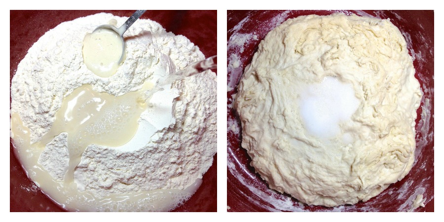 Make a little well in the center of your soft dough, and put the salt in the well, along with an additional tablespoon of water. Don't mix it in. Cover the bowl, and let everything rest for 20 minutes.