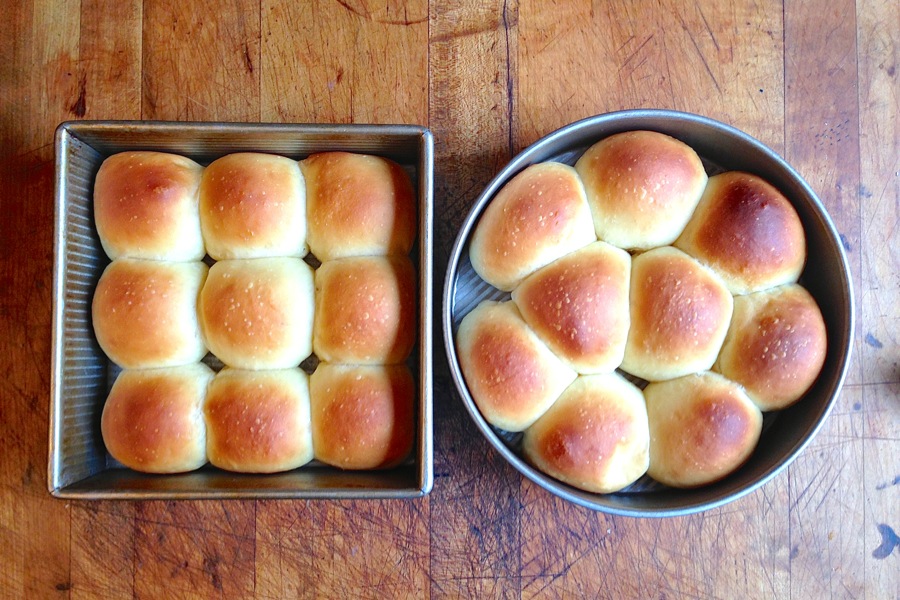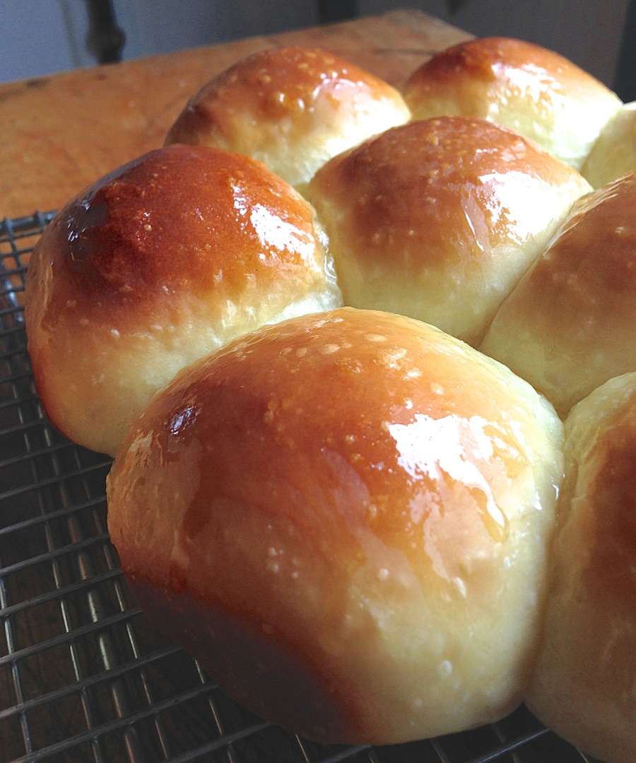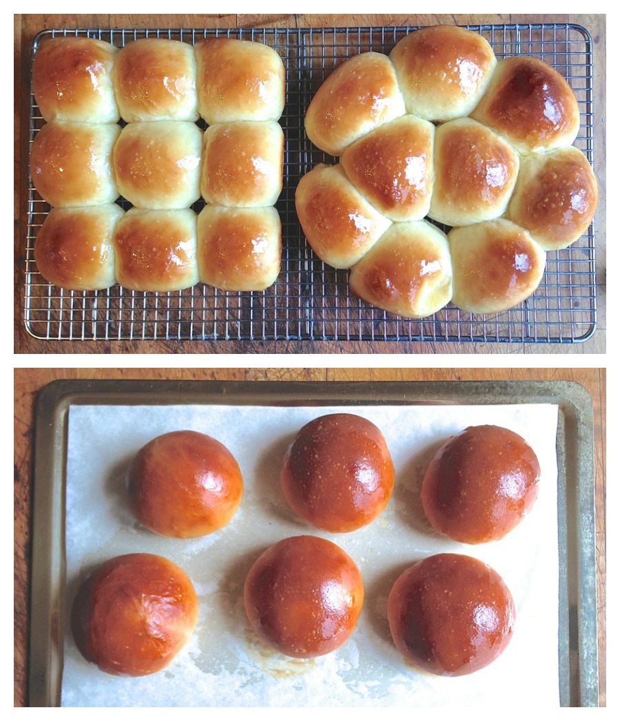 P.S. One more tip: what's with those spots scattered across the rolls? I shaped the dough and then refrigerated the rolls overnight, since I didn't plan on baking them until the next day. When I took them out of the fridge to warm up, I left their plastic covering on. Moisture condensed on the plastic, and dripped down onto the unbaked rolls. Then, when I put them into the oven, those droplets formed small blisters – spots. Lesson learned: if unbaked rolls have been chilled overnight, take the plastic off once you take them out of the fridge.