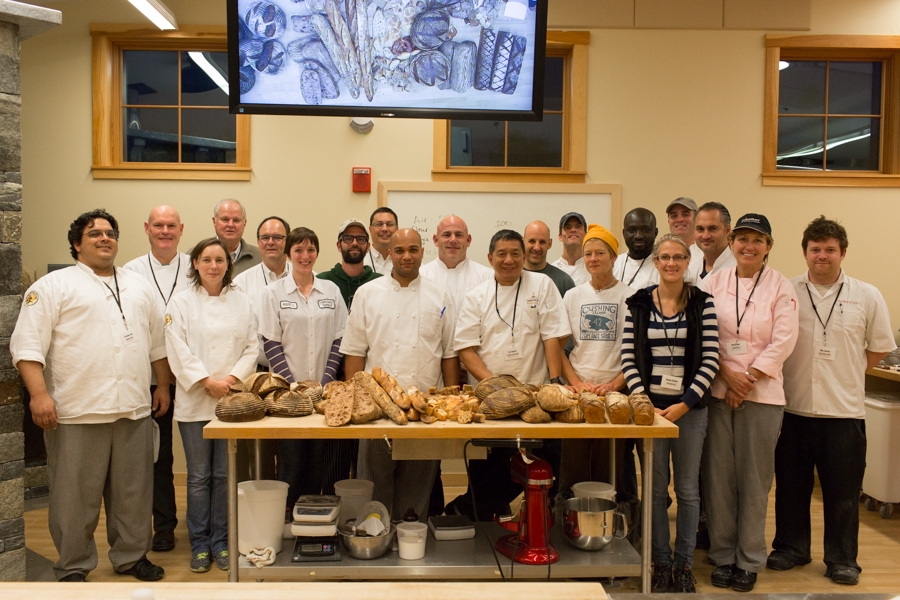 Professional bakers from around the country pose in front of their breads after the King Arthur Flour Artisan Bread Summit, November, 2014.
