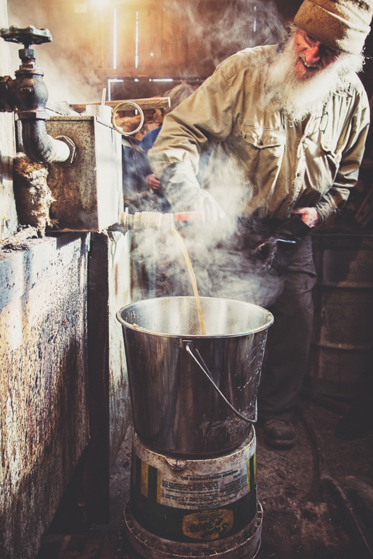 It’s dusk when we fill our mason jars with syrup and start back down the winding dirt road towards home. In a few short weeks the season will be over; the trees will bud and the valleys will begin to return to life. We say our goodbyes and I take one last breath of the damp air, heavy with the smell of wood smoke and tradition.