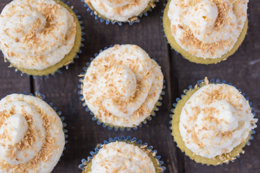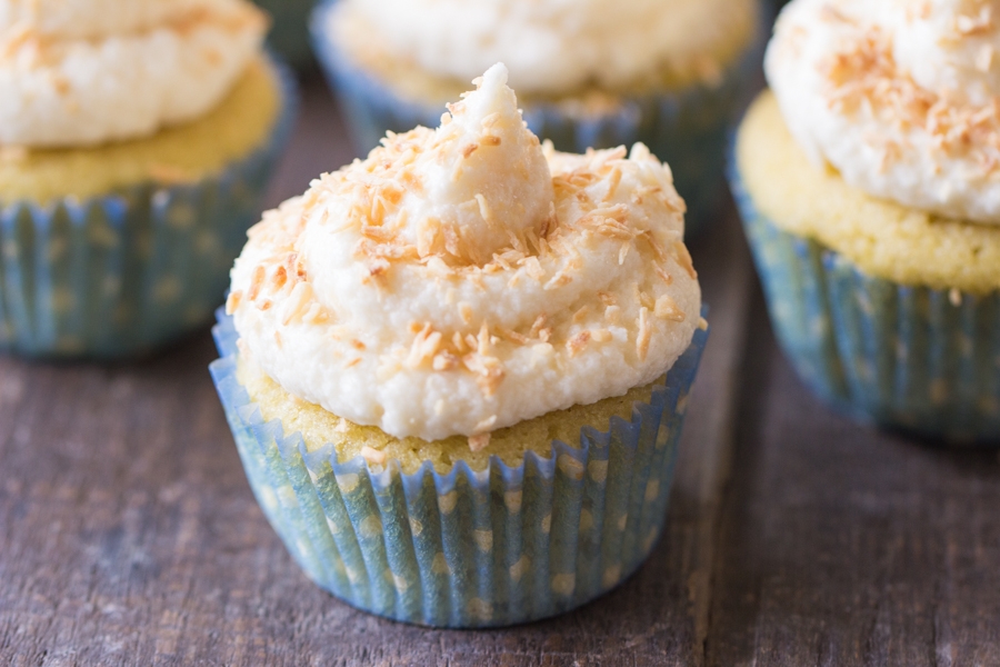 Vanilla Coconut Flour Cupcakes via @kingarthurflourScoop the frosting into a gallon-sized zip-top bag or a pastry bag. If you’re using a plastic bag, snip off the end with scissors. Pipe the frosting onto the cupcakes, and sprinkle with a little toasted coconut.