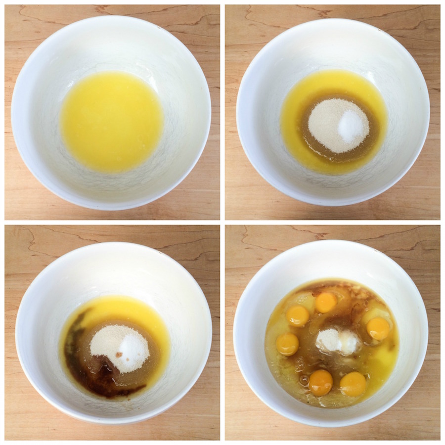 Add the flour mixture to the wet ingredients, and mix to combine.
