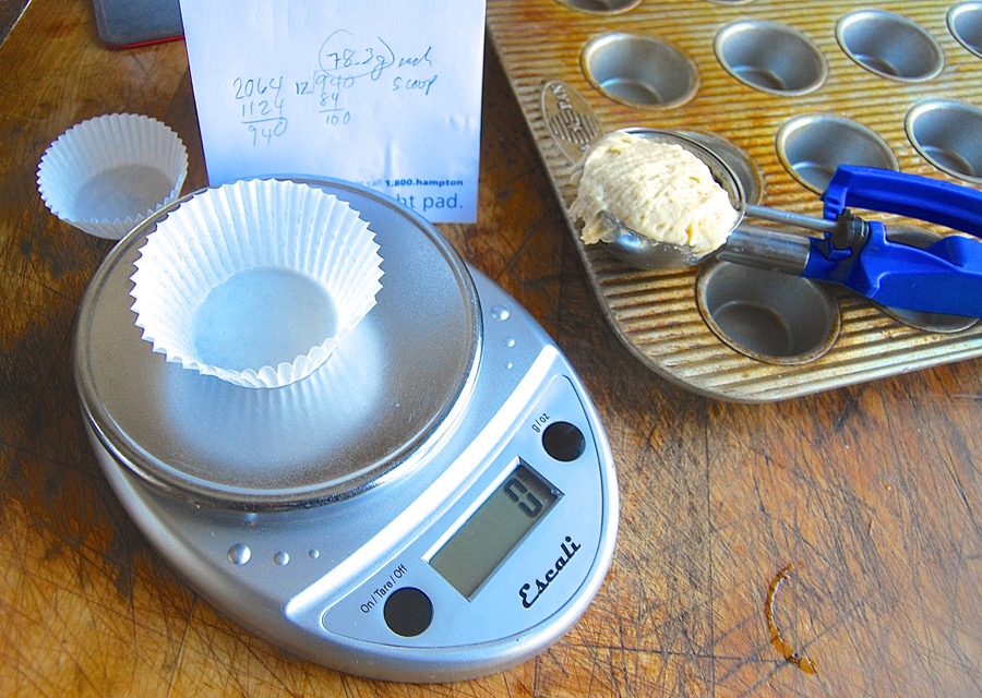 •Scoop out that amount of batter for each muffin (or cake layer, etc.)
