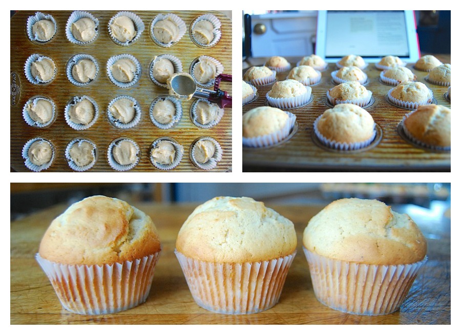 Serendipitously, the recipe makes the perfect amount of batter for 20 minis and six standards; I knew that ahead of time, because I weighed the batter. [Pats self on back.]