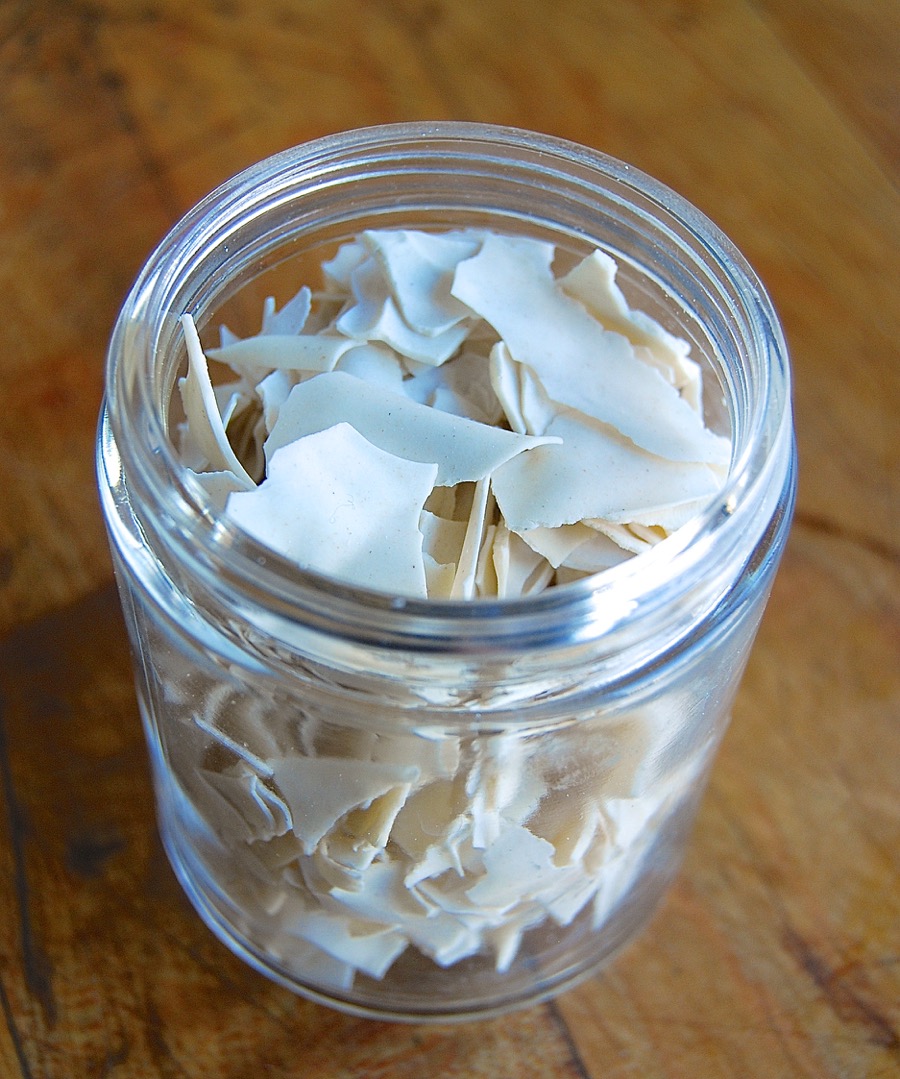 Store the dehydrated starter airtight, preferably in a glass container. You want something totally inert, with an airtight cover; a glass jar is perfect. Date the jar and label it; you don't want someone throwing it away during the course of some pantry spring cleaning.