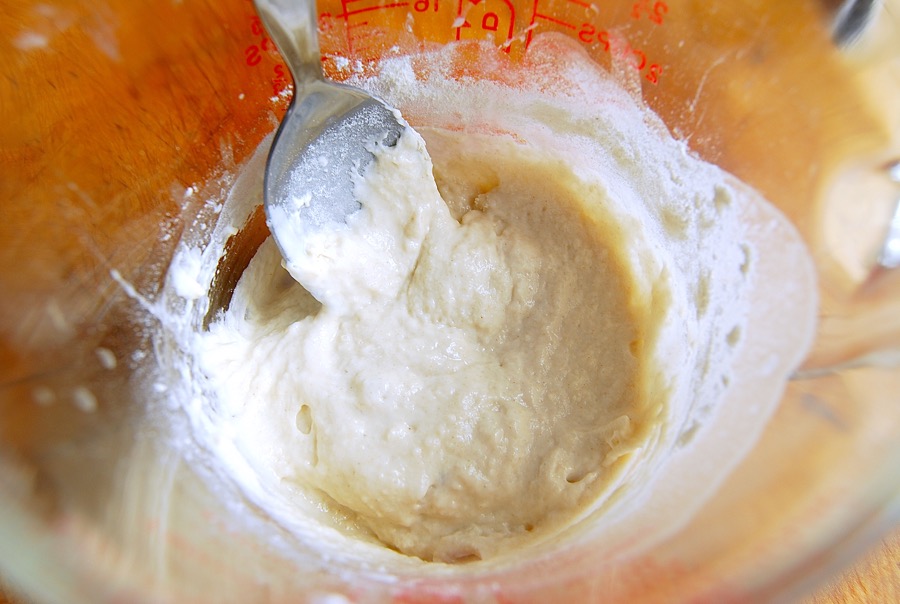 The starter should be spread as thinly as possible; use a spatula, an offset spatula, or a bowl scraper to help the process along.