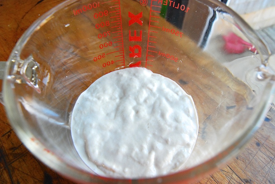 To ready the starter for baking (while saving enough for another day), feed it again. Discard all but 4 ounces; and feed the remainder with 4 ounces each lukewarm water and flour. Let it become bubbly – and let the baking begin!