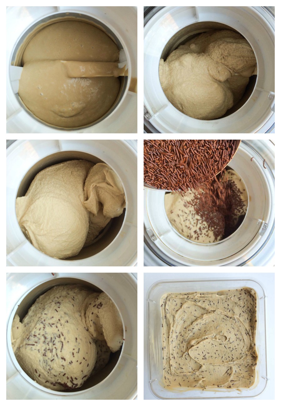 I’m sure you’re starting to notice a theme here. When flavoring the base of your frozen treats, do it before you begin churning. You want to be sure the ice cream base is completely smooth before churning. Check out the image above to see this process in action!