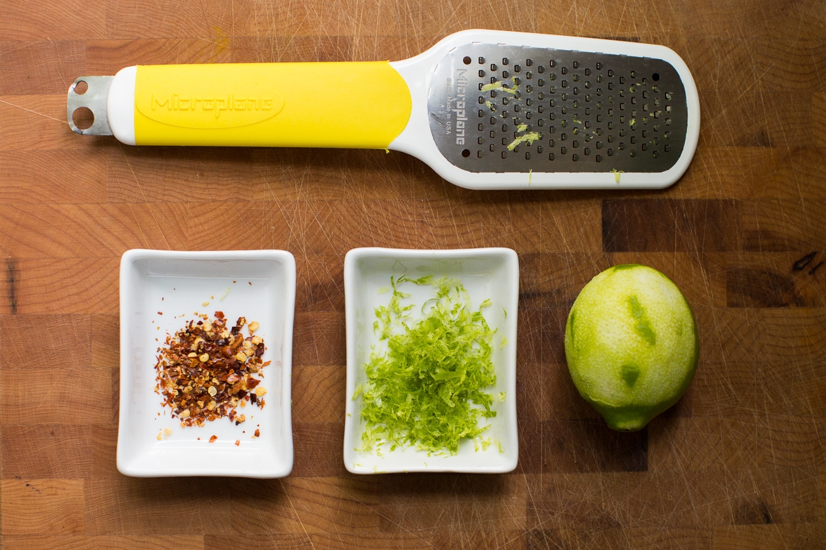 Start with your basic tomato topping, then add grilled corn and squash to taste. Using 2 parts basic topping, 1 part corn, and 1 part grilled zucchini makes for a delicious ratio. Add 1 tablespoon of lime zest, and 1/2 teaspoon of dried chili peppers (to taste) for an extra kick.