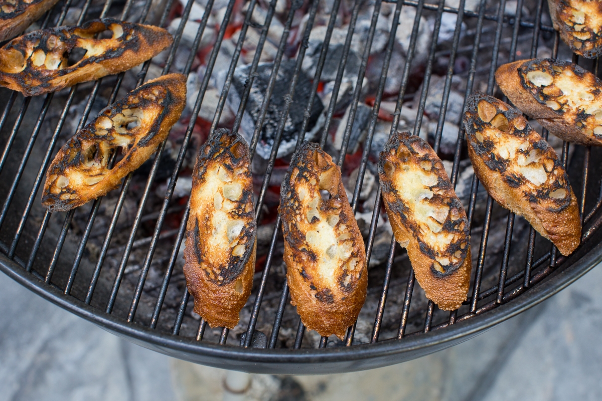 It's hot enough inside already! Use your grill to toast the baguette, and keep all of the heat outside where it belongs. Since you have the grill going anyway, consider throwing on some summer veggies to mix into your topping later.