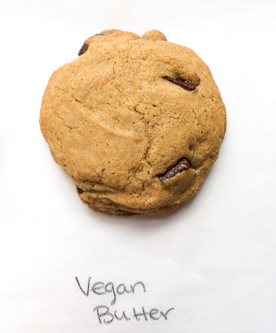 Our next favorite result came with vegan butter. The flavor of the cookies most resembled the original recipe, though we did notice they tasted a bit sweeter. While vegan butter doesn’t list any sugar/sweetener in its nutritional panel, we think it simply pulls out a slightly different flavor from the sugars.