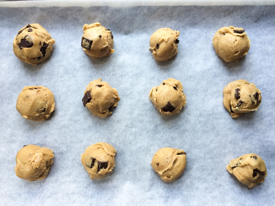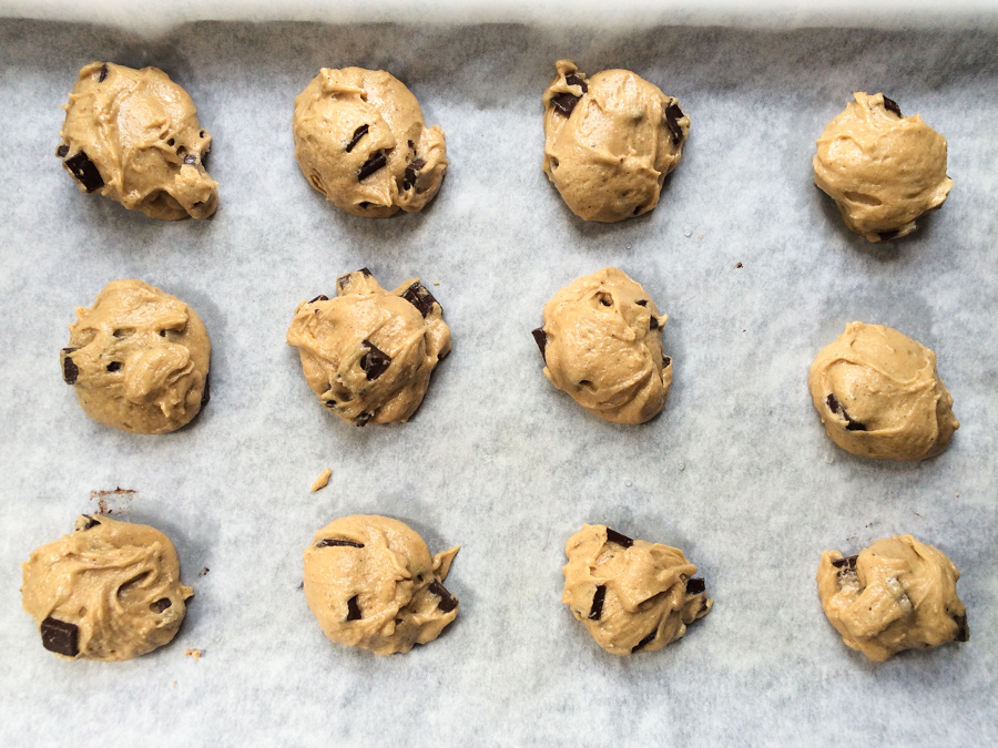 Dough: The dough in this version was a little softer than the original. When scooped onto the baking sheet, the cookies didn't hold their shape as well, starting to spread as soon as they were scooped.