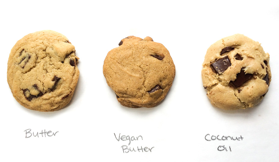 As expected, and as you can see from the picture above, the fats that we used certainly had an effect on the final recipe. We’ll talk about each of the specific fat substitutes in a moment, but we just wanted to demonstrate how much the type of fat you use in a recipe can affect the final product. These three cookies varied in everything from texture to bake time to flavor.