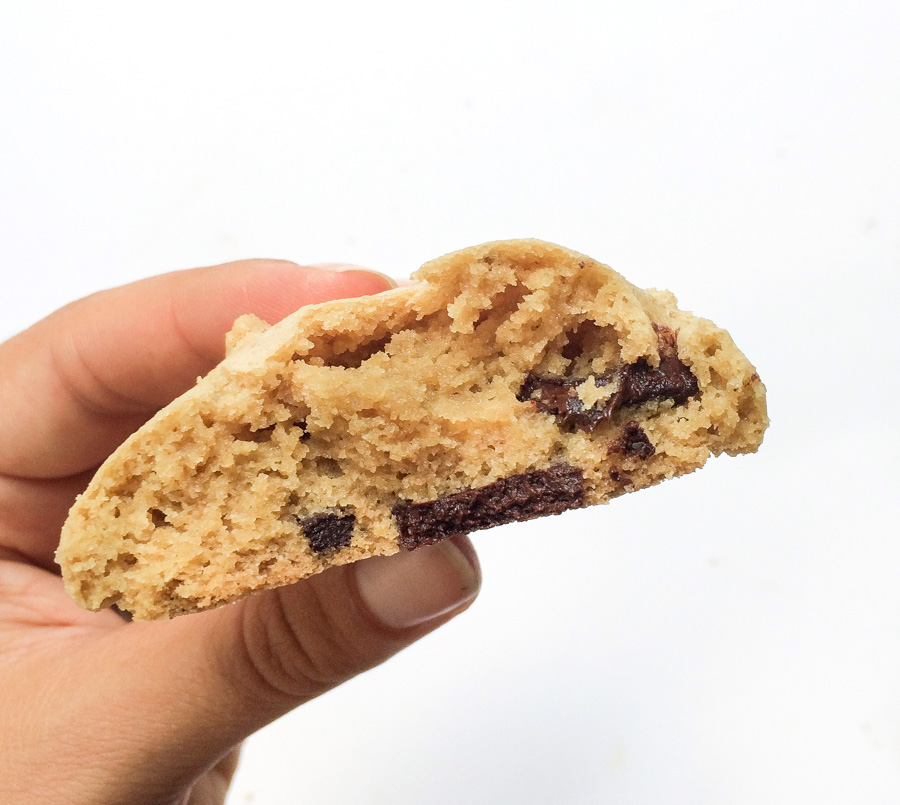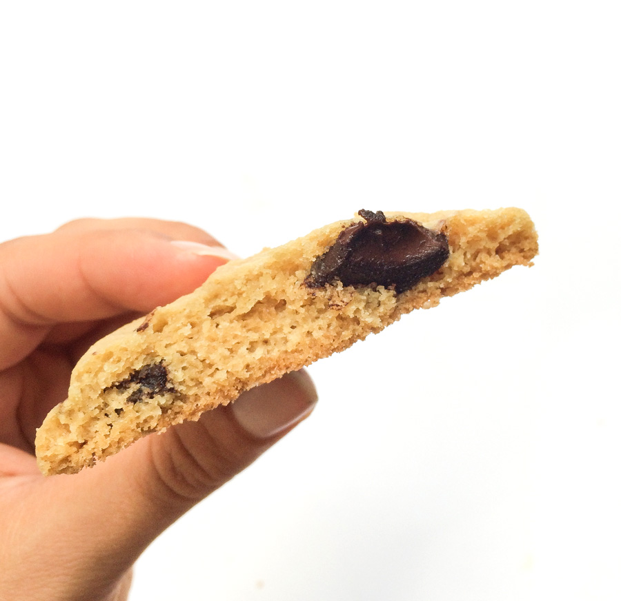 Texture: These were a bit cakier and less chewy than the butter-based recipe. The edges were crisp and golden brown, while the centers remained chewy and soft.