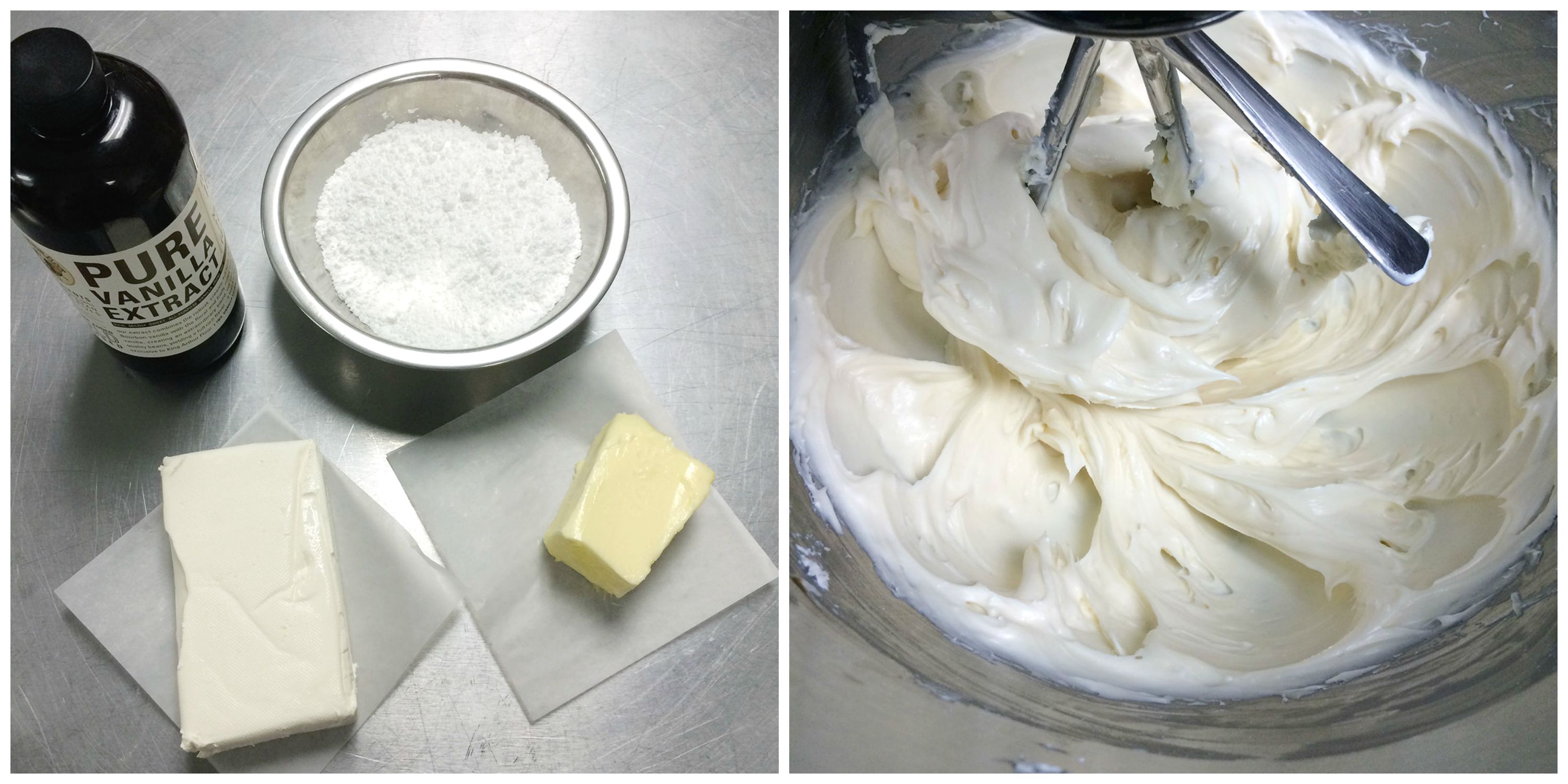 Add 1 cup of confectioners' sugar and 1 teaspoon of vanilla and beat until light and fluffy.