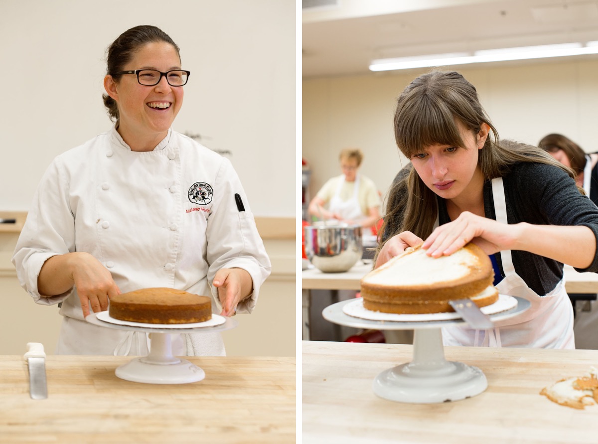 The classroom held several rows of fully equipped stations, allowing each student an ample amount of elbow room. Large television screens located above the stations provided a bird’s eye view of the instructor’s work station. After finding my supplies, I knotted an apron around my waist and pulled out the recipe, eager to begin.