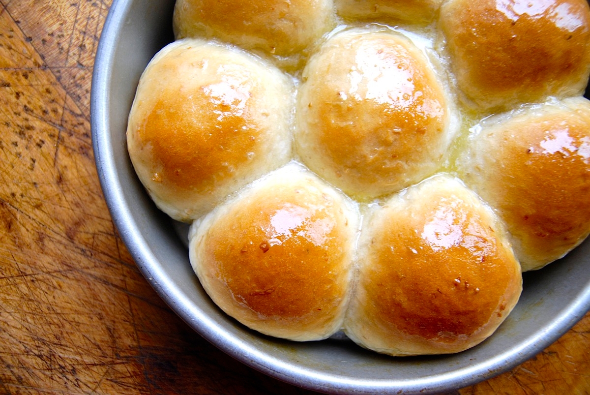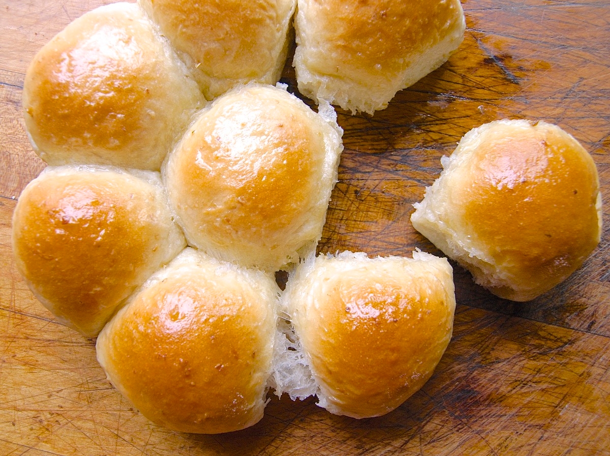 Brush with butter and pull apart. Oh, my... Golden Pull-Apart Butter Buns with oatmeal are a touch denser than the original, perfect for soaking up gravy. And they're wonderfully moist, thanks to the starch in the oats.
