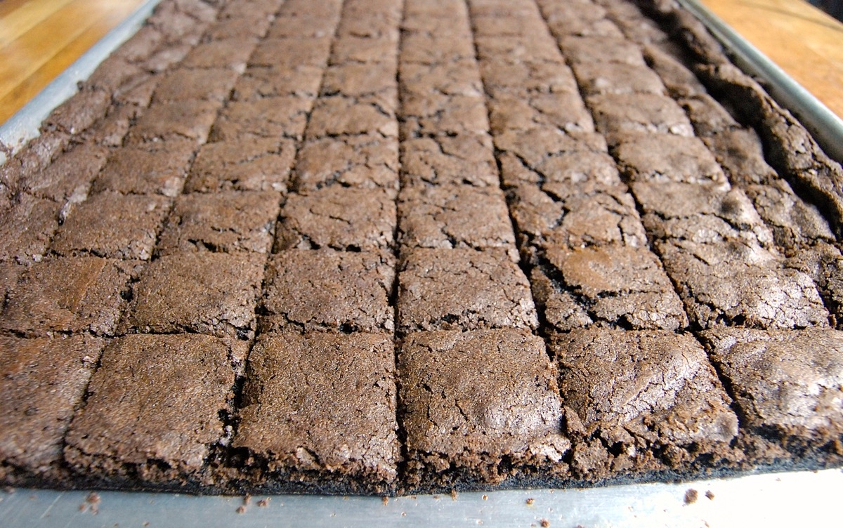 Doubling that high-rising brownie recipe and sticking it in a half-sheet pan offers the potential – nay, the likelihood – of half-baked batter bubbling over the 1" sides of the pan onto the oven floor. NOT a pretty picture.