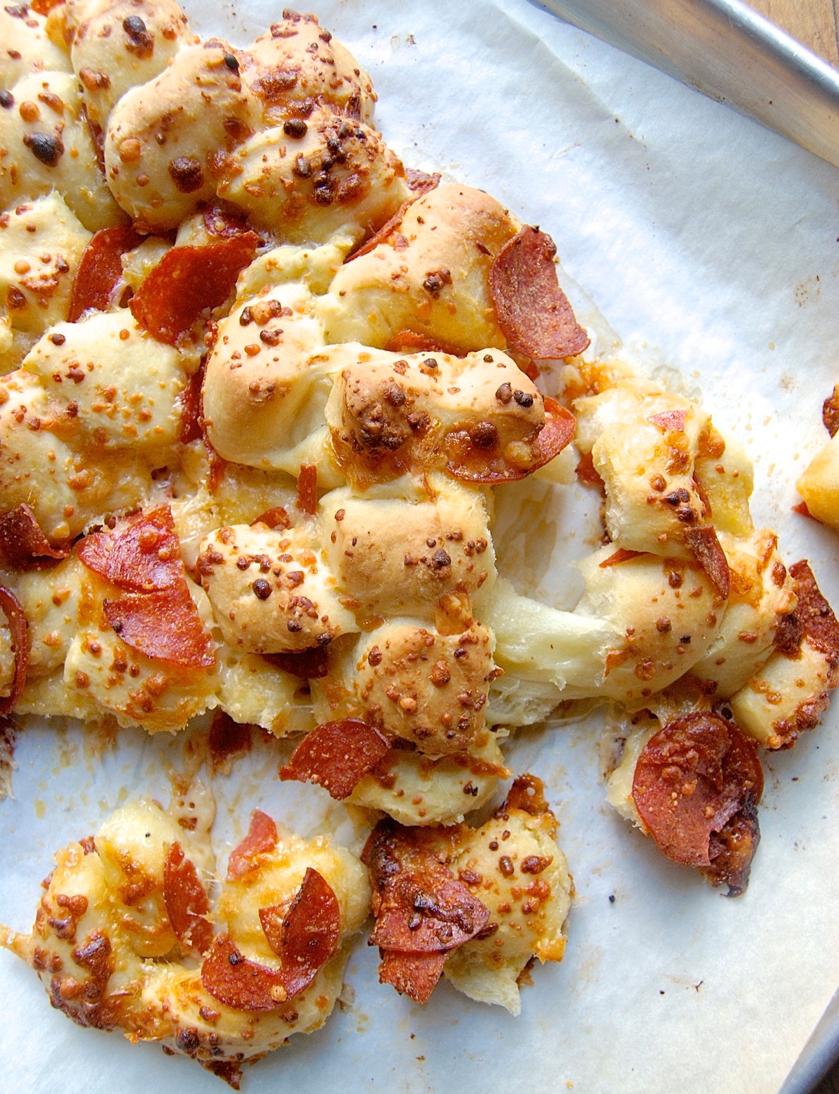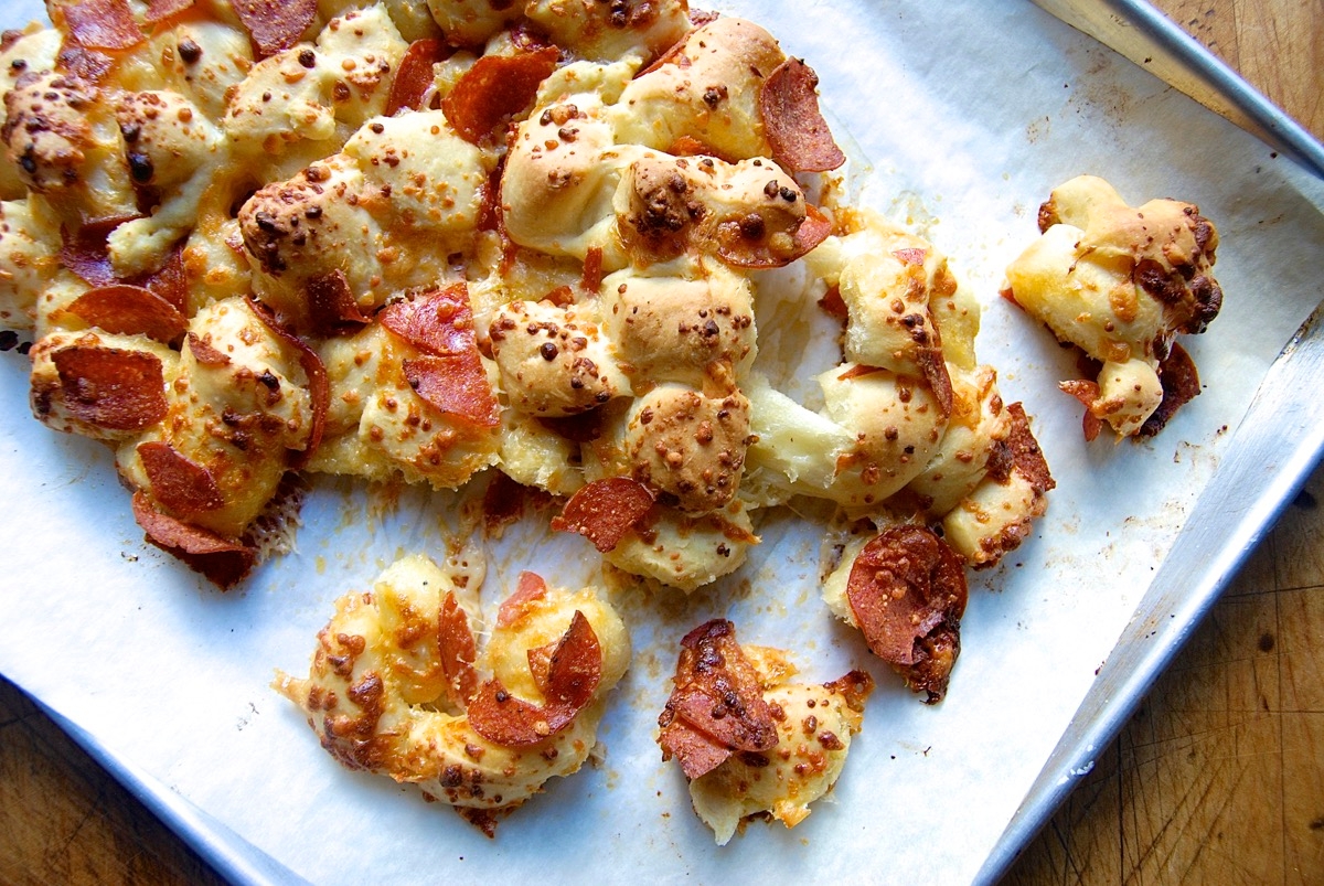 But why limit yourself to a loaf of bread – when the next logical step is pizza? Pull-apart pizza, to be exact.