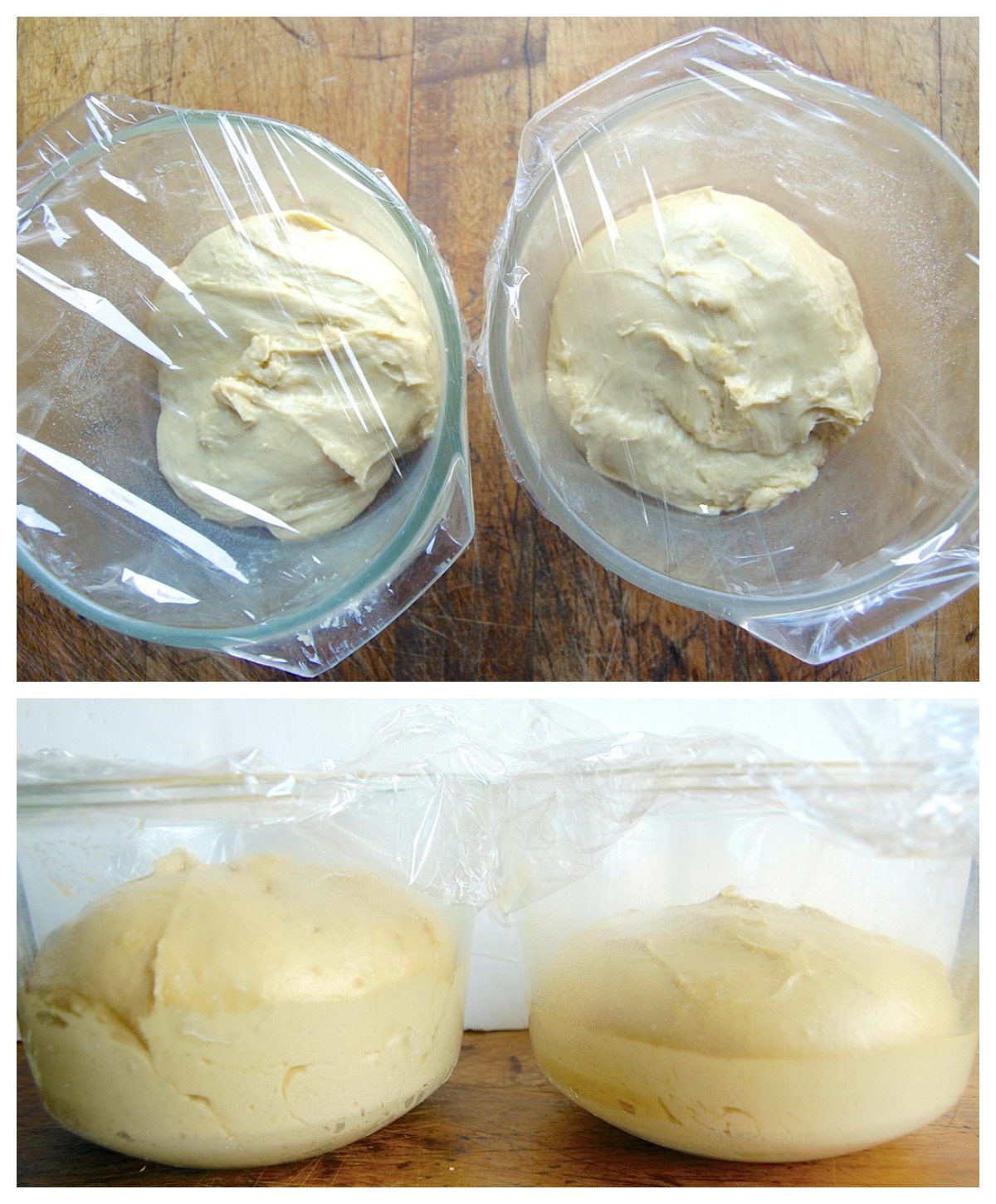 I shape the dough into buns, and let them rise for an hour (bottom).