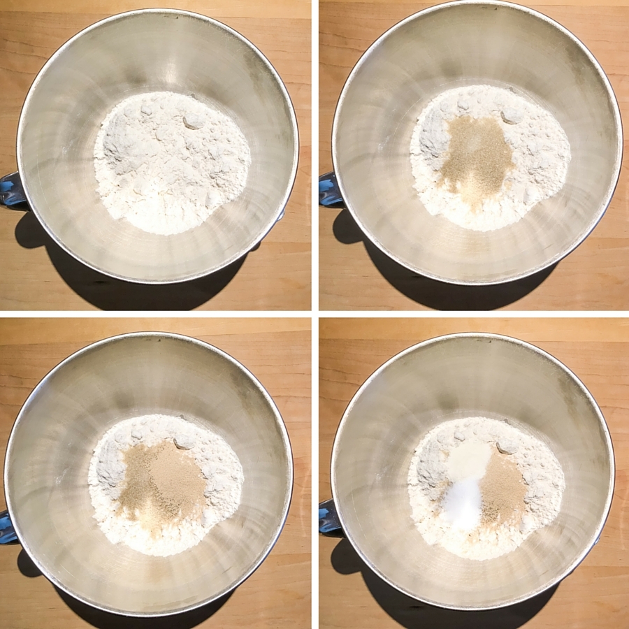 To start we'll place the following ingredients into the bowl of a stand mixer (or large mixing bowl):