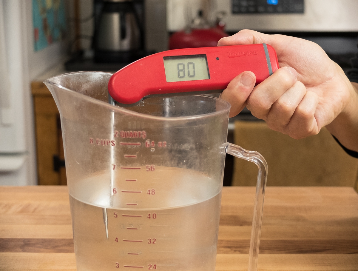 1 cup + 1 tablespoon (8 1/2 ounces, 241g) water (80°F)