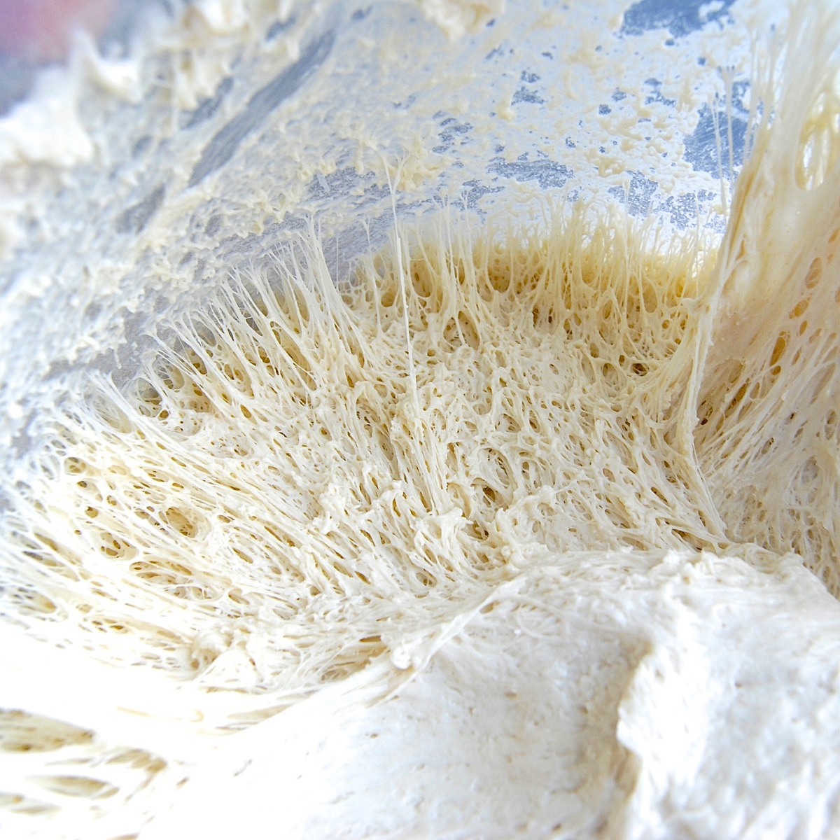 Look at those absolutely beautiful strands of gluten! And this is strictly from a short mix, and long, slow rise in the fridge.