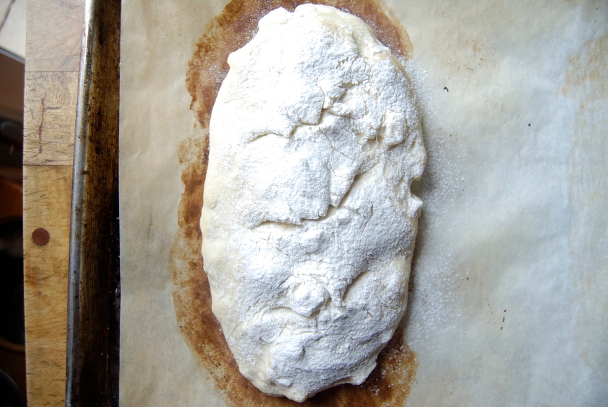 Flour the top of the dough; this will help keep it moist as it rises, and make a pretty crust.