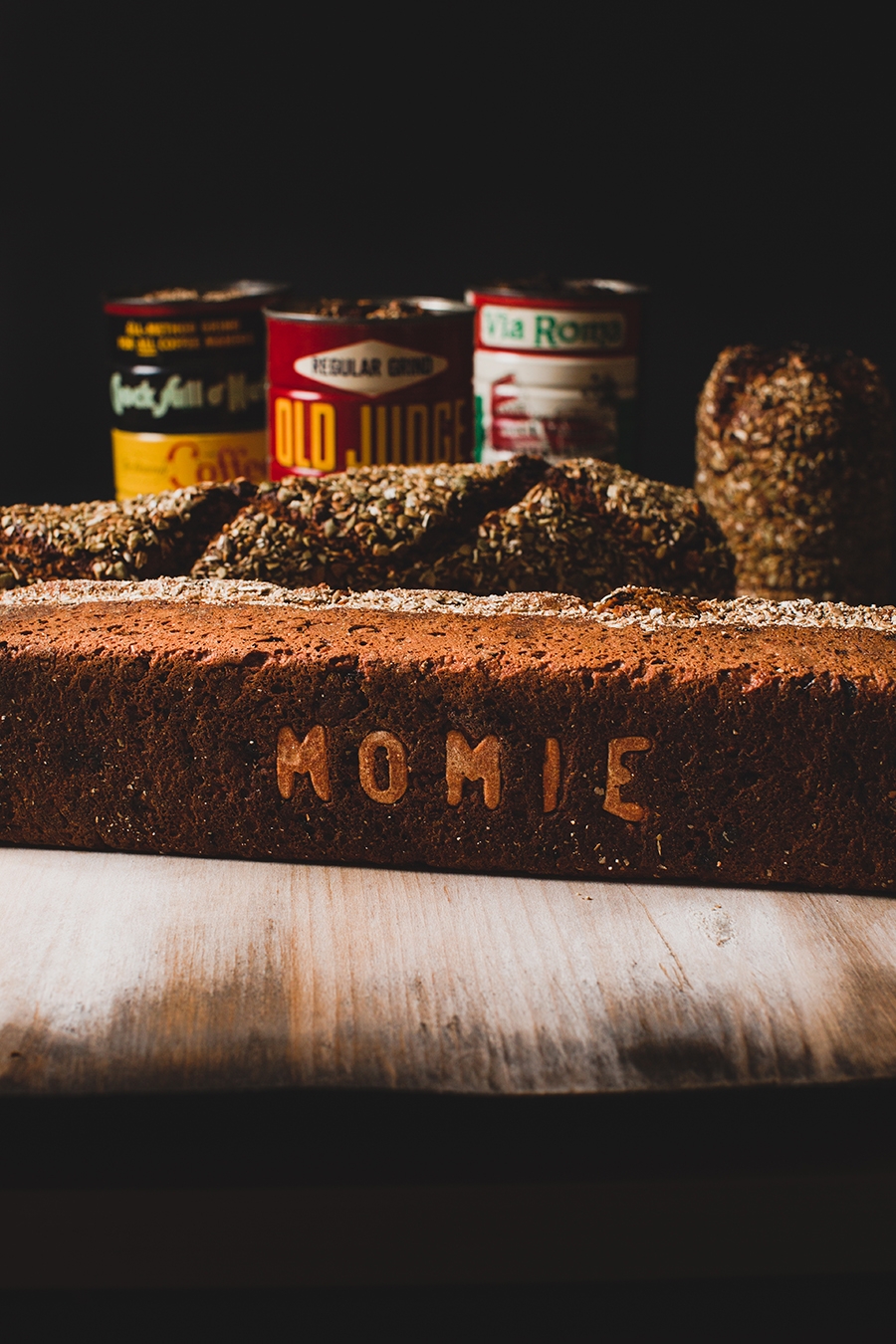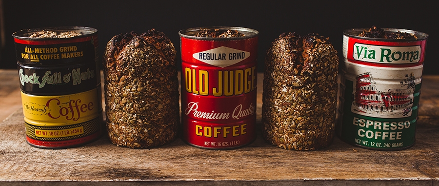 Power-BROT, two ways. Inspired by a recipe from Martin's grandmother, "Momie," the cans represent the traditional steamed brown bread she used to make on the stove top