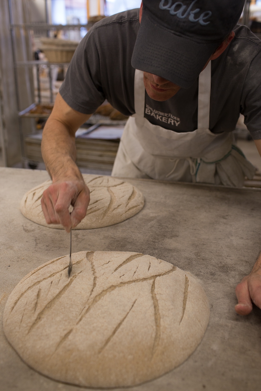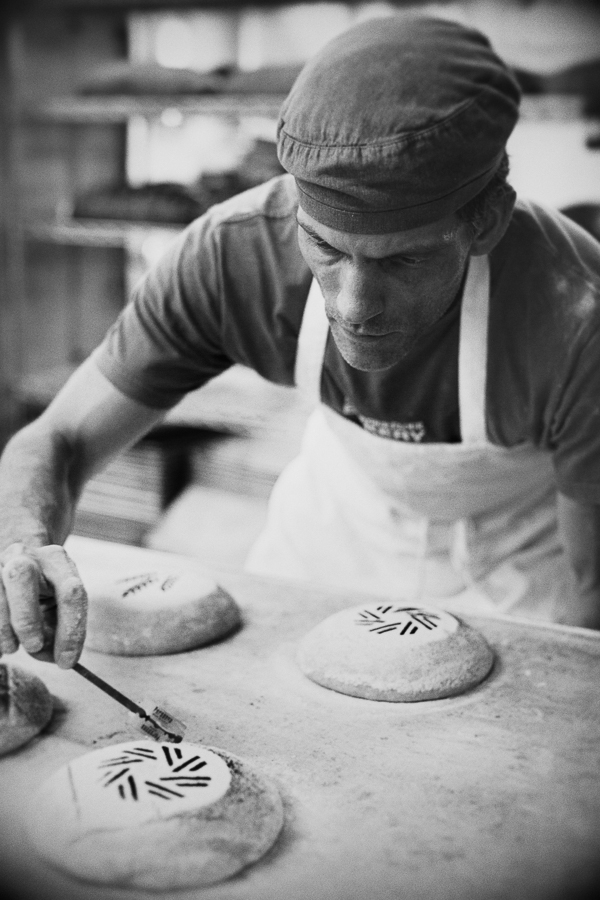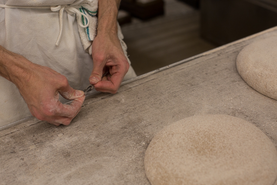 Martin prepares a lame before slashing Kvassmiche loaves