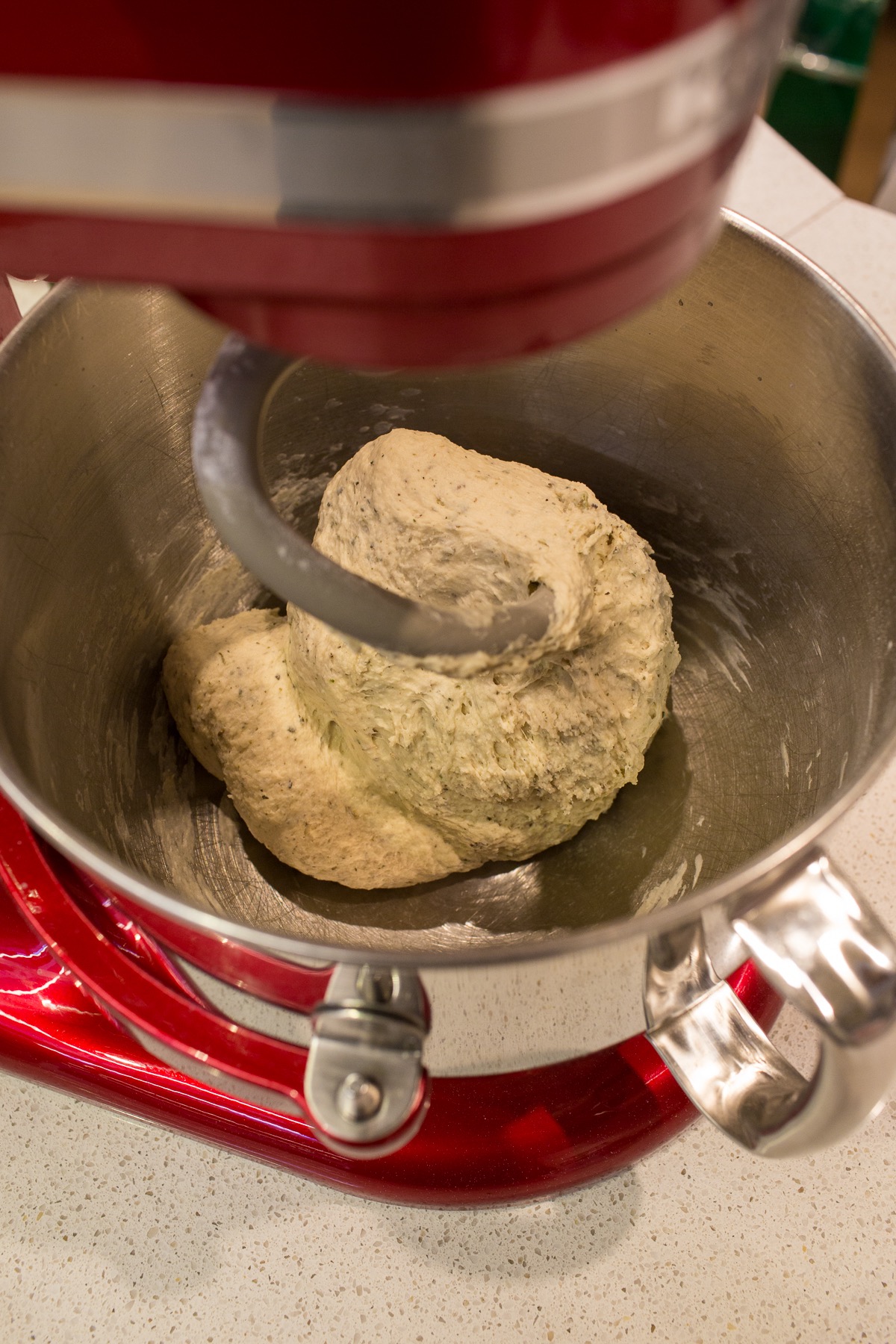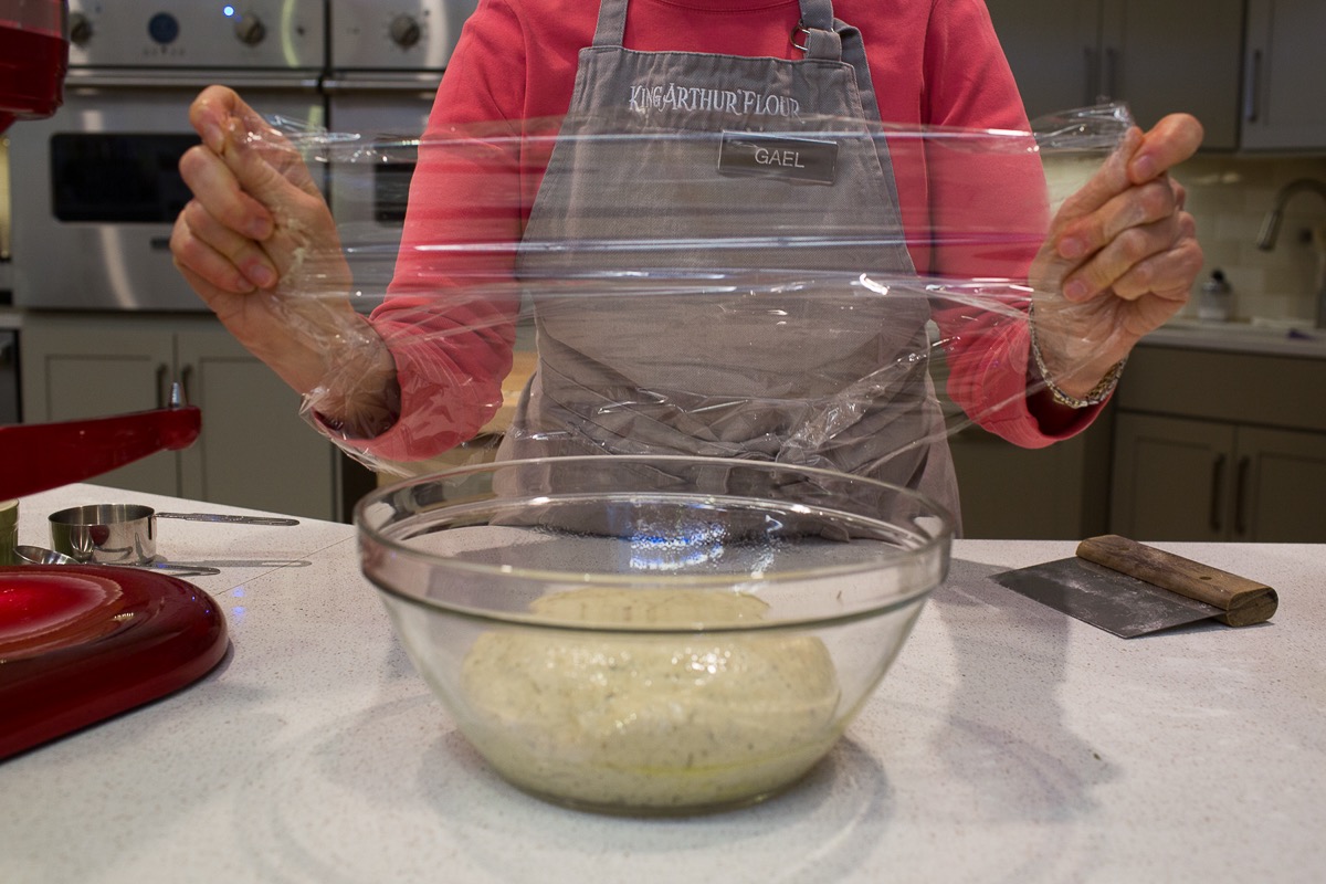 Add 4 1/2 cups (539g) King Arthur Unbleached All-Purpose Flour, 2 tablespoons herbes de Provence and 1/2 teaspoon ground black pepper. Knead the dough — by hand, mixer, or in a bread machine set on the dough cycle — until it's smooth. It'll be quite soft.