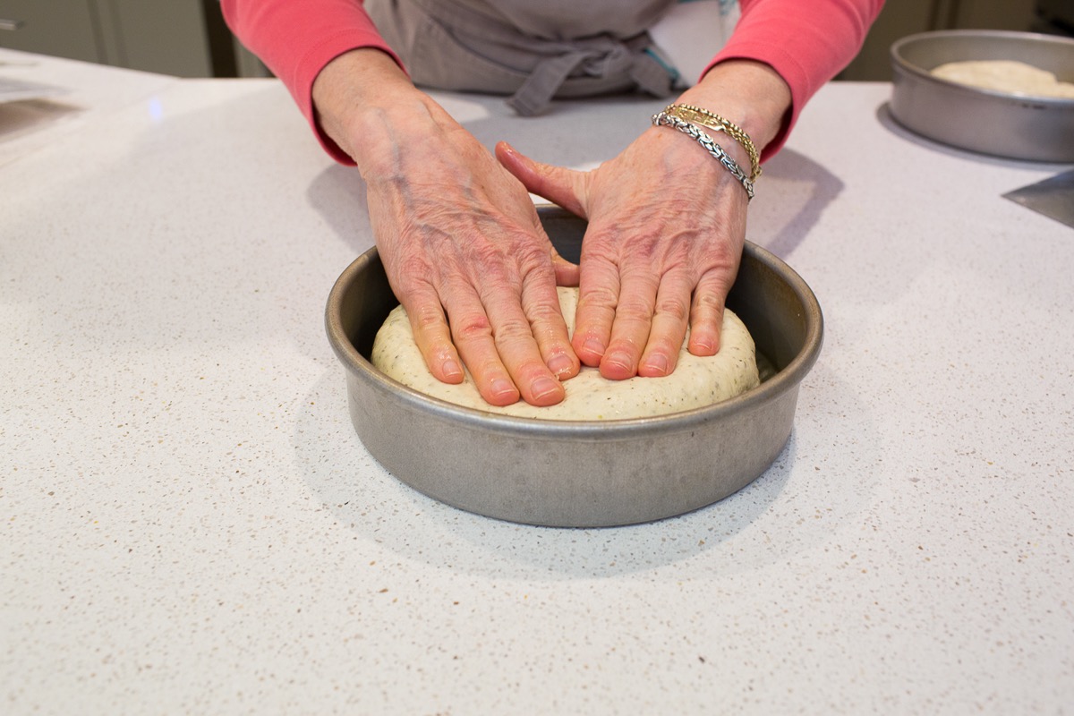Place the rounds into the prepared pans, cover the pans, and let the dough rise for 45 minutes in a warm place.